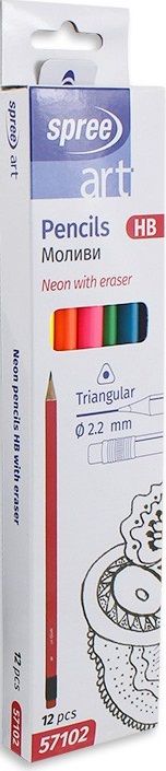 Комплект графитни моливи Spree Art - НВ, неон, 12 броя