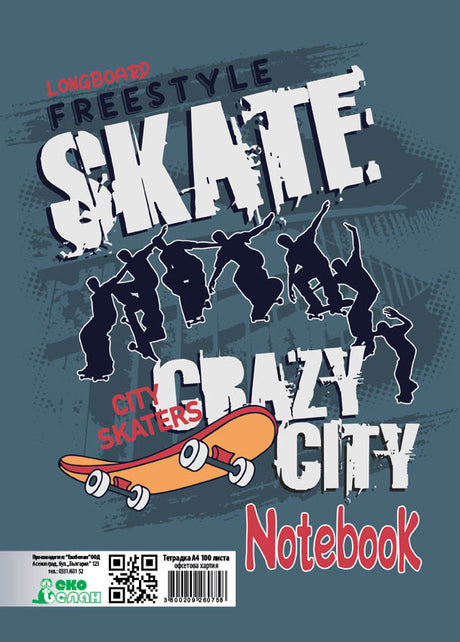 Тетрадка А4, 100 листа, спирала, широки редове, офсетова хартия
