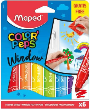 Флумастери за стъкло Maped - Color Peps, 6 цвята + кърпа