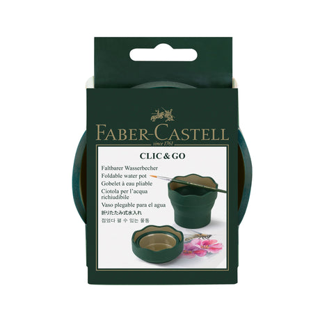 Остават само няколко бройкиЦена на промоция 4.80 лв Обичайна цена 6.90 лвЕдинична ценаНе е налично Faber-Castell Чаша за рисуване Clic&Go, сгъваема, тъмнозелена