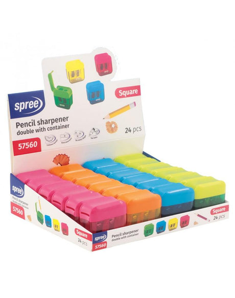 Острилка двойна Spree Square с контейнер, асортимент